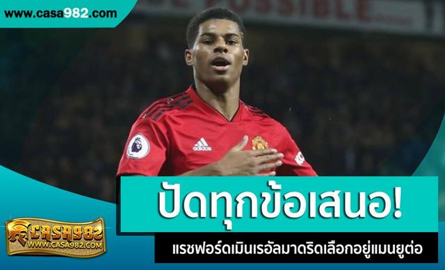 มาร์คัส แรชฟอร์ด กองหน้า แมนเชสเตอร์ ยูไนเต็ด ยอดสโมสรแห่งเวที พรีเมียร์ลีก อังกฤษ จะปฏิเสธข้อเสนอจาก เรอัล มาดริด เพื่ออยู่กับทีมต่อไป ตามรายงานของ เดอะ ซัน สื่อชื่อดังของเมืองผู้ดี